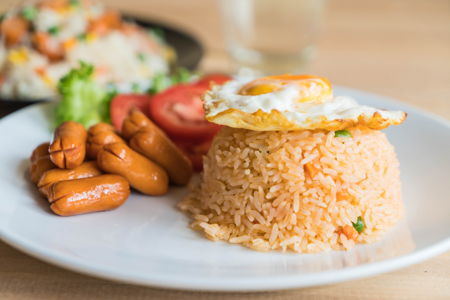This Egg Fried Rice is tossed with fluffy scrambled eggs, crispy bacon, colourful vegetables and a savoury Chinese restaurant fried rice sauce.